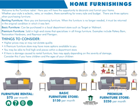 Basic Furniture: Can be purchased in a local department store such as Target or Walmart.