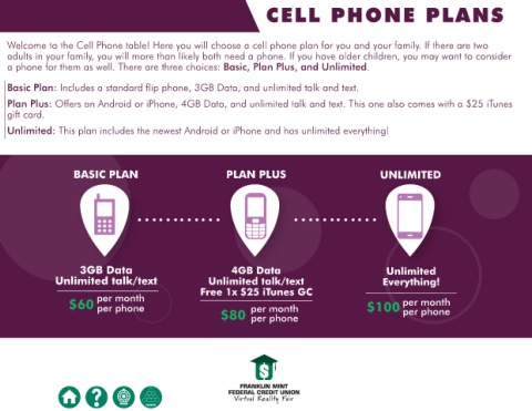 Welcome to the Cell Phone table! Here you will choose a cell phone plan for you and your family. If there are two