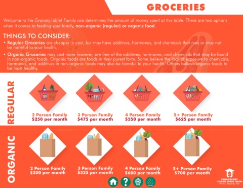 Welcome to the Grocery table! Family size determines the amount of money spent at this table. There are two options